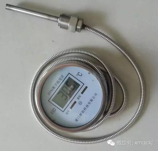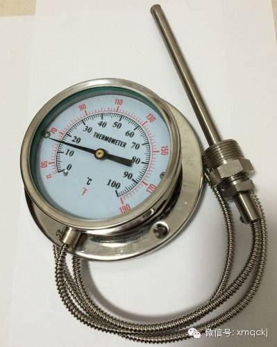 7、壓力式溫度計:壓力式溫度計是利用封閉容器內(nèi)的液體,氣體或飽和蒸氣受熱后產(chǎn)生體積膨脹或壓力變化作為測信號.它的基本結(jié)構(gòu)是由溫包、毛細(xì)管和指示表三部分組成.它是最早應(yīng)用于生產(chǎn)過程溫度控制的方法之一.壓力式測溫系統(tǒng)現(xiàn)在仍然是就地指示和控制溫度中應(yīng)用十分廣泛的測量方法.壓力式溫度計的優(yōu)點是:結(jié)構(gòu)簡單,機械強度高,不怕震動.價格低廉,不需要外部能源.缺點是:測溫范圍有限制,一般在-80~400℃;熱損失大響應(yīng)時間較慢;儀表密封系統(tǒng)(溫包,毛細(xì)管,彈簧管)損壞難于修理,必須更換;測量精度受環(huán)境溫度、溫包安裝位置影響較大,精度相對較低;毛細(xì)管傳送距離有限制.壓力溫度計經(jīng)常的工作范圍應(yīng)在測量范圍的1/2--3/4處,并盡可能的使顯示表與溫包處于水平位置.其安裝用的溫包安裝螺栓會使溫度流失而導(dǎo)致溫度不準(zhǔn)確,安裝時應(yīng)進行保溫處理,并盡量使溫包工作在沒有震動的環(huán)境中.